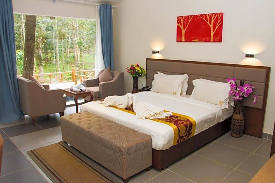 The spacious double room offers a tea and coffee maker, a seating area, a balcony with garden views as well as a private bathroom boasting a bath. The unit has 1 bed.
